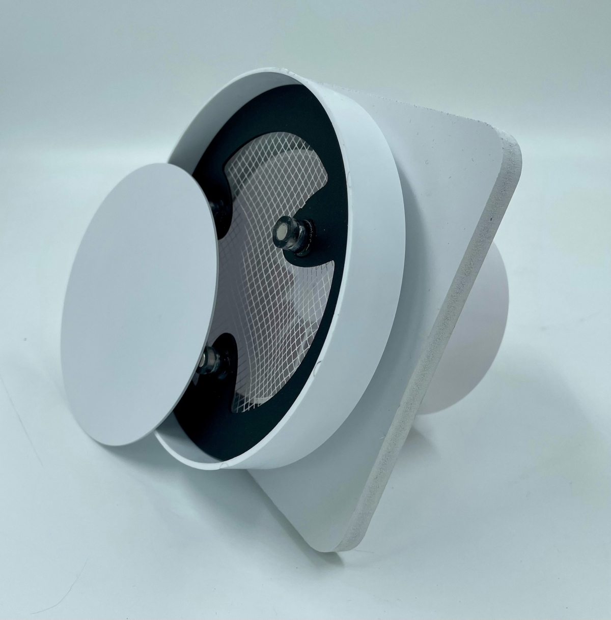 • Решетки сделаны из высококачественного пластика и стали и покрашены в белый матовый цвет муар, который идеально сочетается с цветом и текстурой полотна потолка. Центральный диск держится на неодимовых магнитах.